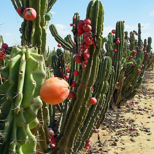 The Apple Cactus produces sweet and juicy fruits, showcasing a remarkable combination of hardiness and flavour. This low-maintenance, attractive cactus yields egg-shaped fruits in various hues, ranging from orange to red and pink. Resembling Dragon Fruits, these fruits feature a soft, succulent white flesh with a delicate sweetness and subtle floral undertones. Embedded within the white flesh are crunchy black seeds, enhancing the overall textural experience. Perfect as a refreshing snack, especially when chilled, these fruits can be used similarly to Dragon Fruit. While highly drought-tolerant once mature, Apple Cactus thrive during a wet summer for optimal growth and flowering, followed by a drier winter period where no watering is necessary. Similar to other members of the Cactaceae family, like Dragon Fruit, excellent drainage is crucial, with plants excelling in partial loam and sandy/gravelly soils. Cross-pollination proves highly beneficial, making at least two plants ideal for cultivating different fruit colors. With reported cold tolerance down to -5 degrees Celsius, coupled with their preference for seasonally dry conditions, the Apple Cactus stands out as an excellent substitute for Dragon Fruit in cooler, drier climates. This columnar cactus can reach heights of up to 10m, making it one of the largest self-supporting cactus species that requires no additional structure for support. Its attractive white-pink, nocturnal flowers, emit a pleasant fragrance, add to its ornamental appeal. Due to its vertical growth habit and tolerance for arid conditions, the Apple Cactus serves as an excellent option for narrow spaces in drier soils. It is also well-suited for container and pot cultivation. In summary, the Apple Cactus not only offers delectable and succulent fruits but also presents an ornamental form and the ability to thrive in drier and cooler conditions, distinguishing it as an exceptional alternative to the Dragon Fruit.