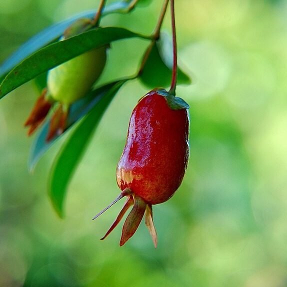 A rare Eugenia indigenous to the Rio Grande region of Brazil, the Cherry of the Rio Grande is a highly ornamental tree that yields delicious, sub-acid, cherry-like fruits. Requiring minimal maintenance, these trees naturally grow compactly with a well-defined shape, making them ideal for ornamental hedges where their wavy, glossy, elliptical leaves and stunning white flowers stand out. Typically reaching heights of 5-6 metres, this plant can grow substantially larger in optimal climates, forming a dense canopy. Its compact size renders it suitable for small backyards or container cultivation, also facilitating easy netting to provide protection against troublesome birds or fruit flies. Cherry of the Rio Grande thrives across a range of environments including savannas, grasslands, forests, and rocky areas, being not overly demanding in terms of soil fertility and quality, Trees thrive with year-round, moderate rainfall, especially during flowering and fruiting. However, they can tolerate moderate droughts, as commonly experienced in their native range. flourishing even in relatively unfertile soil. However, alkaline soils should be amended or avoided. Plants have reasonable drought tolerance, but for optimal productivity, it’s crucial to ensure ample rainfall or watering during blooming and fruit development. Given their shallow root systems and preference for consistent moisture, plants will greatly benefit from the application of mulch. Full sun or partial shade is suitable, and these plants can be cultivated in containers, offering the advantage of easy relocation to warmer spots during cooler months. Cold tolerance is notable for a eugenia, enduring temperatures down to -4 degrees when mature, although young plants lack frost tolerance and should be adequately protected. The medium-sized fruits have a globular to Pear-like shape as they mature, ripening quickly three weeks after flowering to a deep purple with a prominent calyx like other Eugenia. Fruits are juicy and possess a slightly acidic and sweet taste, akin to a cross between a Brazilian Cherry and a traditional Sweet Cherry. These fruits can be utilized in preserves, jams, or frozen for later use. Cherry of the Rio Grande is a superb alternative to the sweet cherry in tropical climates, much like the Cedar Bay Cherry is an excellent native replacement. Like other Eugenia trees, it is advisable to net the plants as their attractive, colorful fruit is often targeted by birds. Overall, the Cherry of the Rio Grande is a delicious snacking fruit boasting excellent form and appearance.