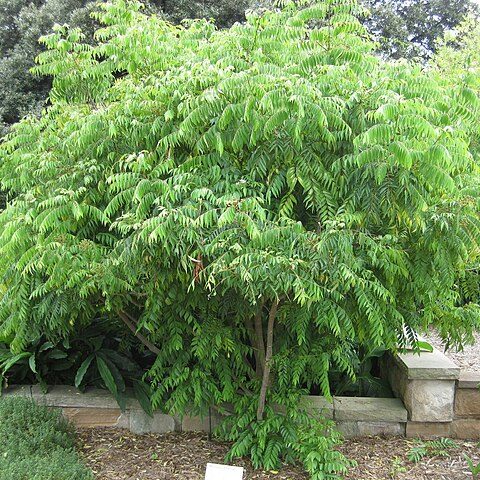 Plants make for a tidy tree with a spreading, rounded form, reaching up to 5m in height but can be easily kept much lower. The valued, pinnate foliage is borne oppositely and droops attractively. The clusters of fragrant, small, white flowers can be attractive but are best removed to prevent the development of berries.