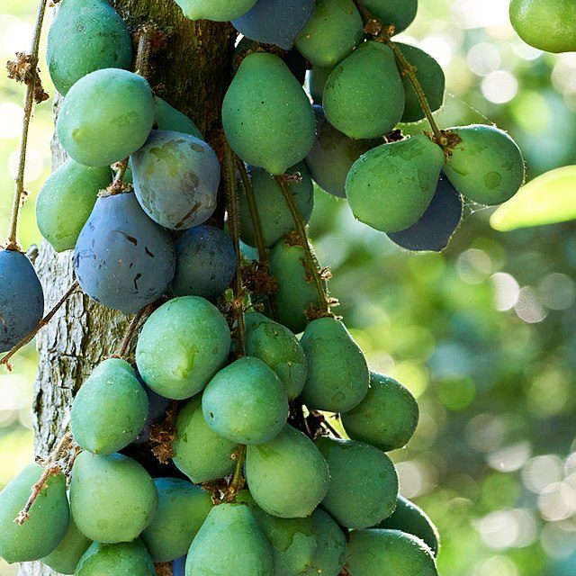 Indigenous to the East Coast of Australia, the Davidson Plum is a notable Bush Tucker plant encompassing three Davidsonia species. D. Jerseyana, found in North East NSW, D. Johnsonii, native to North East NSW and South East Queensland, recognized as the Smooth variety, and D. Pruriens, indigenous to North East Queensland, also known as the Ooray. Davidson Plums have an intensely sour and astringent flavour with its taste closely resembling that of Plums. The bright sharpness of their acidity makes them excellently suited for crafting both sweet like Jams and Cordials and savoury like sauces. Plants produce appealing purple fruits that boast a vibrant, blood-red flesh that is abundant in antioxidants. The growth pattern of Davidson Plum is reminiscent of Papaya, initially featuring a slender, tall trunk that directly bears fruit in a striking display. As they mature however, they develop into a multi-branched tree. Mature foliage of the Davidson Plum is characterized by a coarse texture, with hairy, jagged-edged leaves exuding rustic charm, while the new growth is soft and showcases an attractive light red hue. Plants have interesting red flowers and contrasting yellow stamens. The height of the tree is partially dependent on the species, but can range between 4-12m. Mature plants exhibit tolerance to light frosts and are well-suited to subtropical and frost-free temperate climates. Thriving in shaded, moist environments, the Davidson Plum, being an understory plant, can endure heavy shade. A fertile, moist, well-draining soil is ideal although they are adaptable to many other soil types. Due to its compact size, it serves as an outstanding fill-in plant for small, sheltered, shaded spaces within the garden.