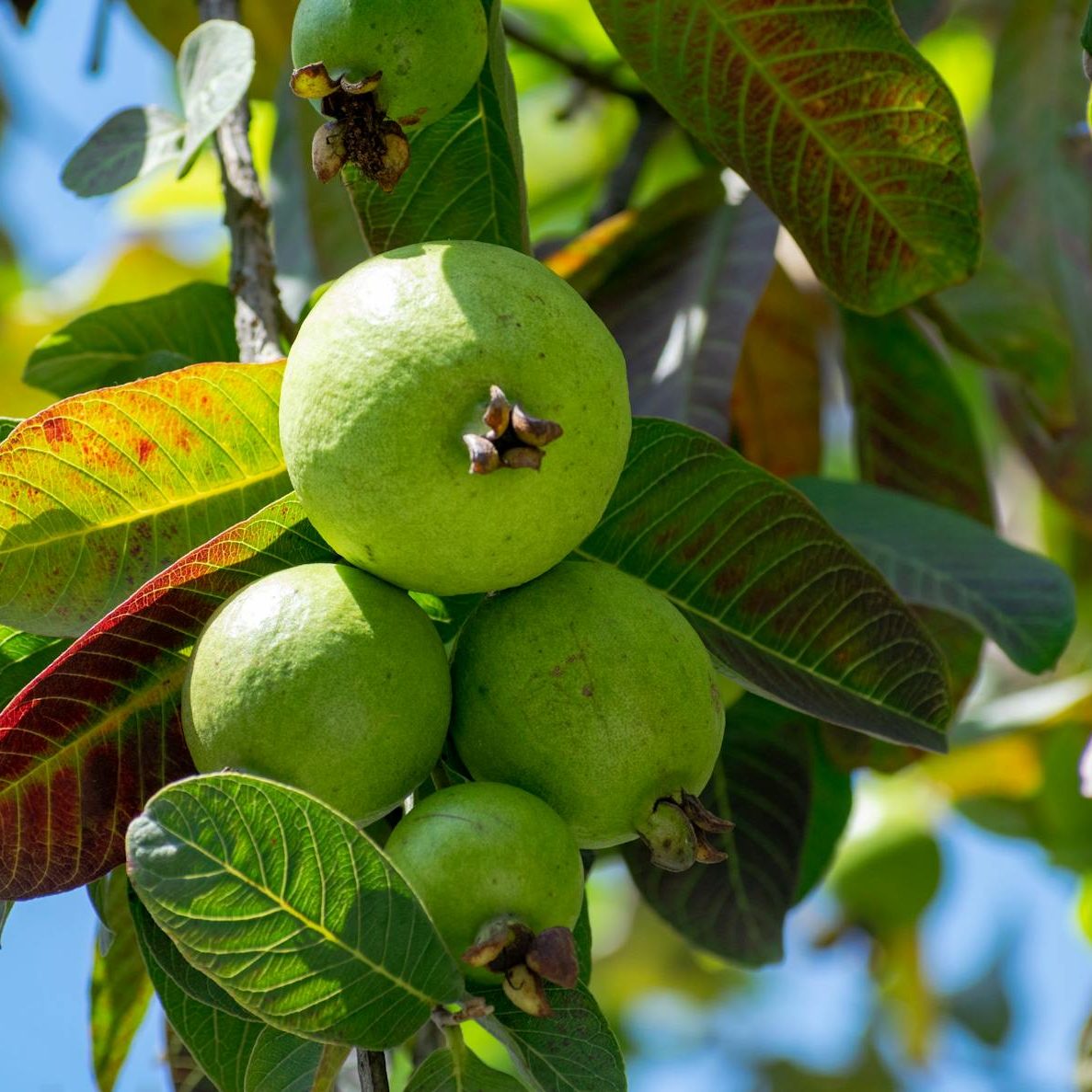 One of the most popular fruits globally and extensively cultivated across all tropical and subtropical regions, Guava are an excellent, ornamental edible addition to any garden. Due to their widespread cultivation, a variety of Guava types are available, each exhibiting distinct, attractive characteristics. For instance, the Ruby Red variety boasts bright red, sweet, and juicy flesh, while the Starlings White variety features crisp, white flesh and the Mexican Cream has creamy, white, sweet flesh and minimal seeds. Guava are consumed both when ripe and soft and immature when crunchy, in both forms they make themselves an excellent fruit. Fruits are often consumed when firm and still immature to protect them from pests and to enjoy their delicious crunchy flesh, in this form they are delicious eaten fresh or in fruit salads when combined with sweet, sour and salty dressings/seasonings. Fully ripened Guavas have sweet, juicy and soft flesh and can be eaten fresh or chilled, turned into smoothies or juices, or combined into Jam or Ice Cream. Self-pollinating and moderately hardy to drought and salt, Guavas thrive in well-drained, well-watered, and slightly acidic soils under full sun conditions. These optimal conditions promote prolific growth and fruit production. Guavas can be partly deciduous in cooler climates, demonstrating some tolerance to frost and cooler conditions. For optimal fruit quality, providing full sun and a warm environment is crucial, especially in cooler climates where fruit may otherwise lack sweetness. Guavas are visually appealing with uniquely shaped leaves and delicate white flowers. They can be cultivated as either shrubs or trees, fashioned into hedges, or trained into an espaliered form. A must-have for any tropical garden, Guavas come in various sizes and flavours, catering to the preferences of every gardener.