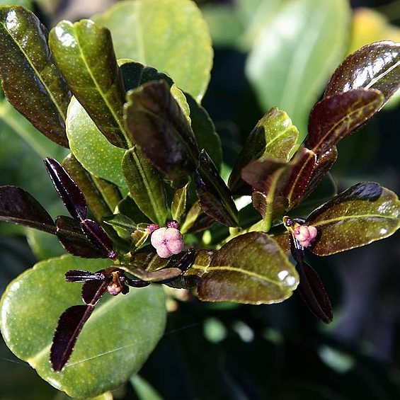 An original citrus species native to Tropical South-East Asia, the Kaffir Lime, or Makrut, stands out for its unique and unusual characteristics, both in appearance and culinary applications. Kaffir Lime has hourglass-shaped leaves exuding a strong Citronella fragrance and possessing a pungent Lime flavour. This citrus variety features rough, bumpy-skinned fruit that remains green when ripe. The lime-flavoured leaves play a crucial role in South-East Asian cuisine, enhancing the pungent flavors of soups and curries such as Thai Tom Yum and Indonesian Soto Ayam, while the fruit’s rind contributes to making a flavourful curry paste such as the Khmer Kroeung. For longer-term usage, the pungent leaves can be dried or frozen, while the rind can be dried and powdered. Despite the small size of the fruits and their production of only a negligible amount of sour, slightly bitter juice, the intensity of the flavour is striking. The Kaffir Lime makes for a perfect companion to the Calamansi (a Kumquat hybrid) for enthusiasts of South-East Asian cuisine, as the partially ripe form of Calamansi serves as an ideal sour condiment which the Kaffir Lime can struggle to fulfil effectively. Kaffir Lime plants are thorny, naturally adopting a shrub form that rarely exceeds 5 metres in height and often grows to 2-3 metres. The aforementioned hourglass leaves of the Kaffir Lime are its main ornamental feature, with new growth a glossy, purplish colour, and the white flowers bearing a delicate fragrance. Especially in their dwarf form, Kaffir Limes are well-suited for container cultivation due to their compact size and their leaves being the main product. Originating from the tropics of South East Asia, the Kaffir Lime is less cold-tolerant than other citrus varieties, even when on a cold-hardy rootstock, and may struggle with more than a moderate frost. To support healthy growth and robust fruit set, it is essential to provide these plants with abundant rainwater or regular watering. Avoid poorly drained soils, as Kaffir Lime plants thrive in deep, fertile, slightly acidic soil. Like all Citrus varieties, full sun is ideal for ensuring optimal health, form, and fruiting. However, partial shade is also acceptable, although it may lead to reduced fruiting, which would be undesirable for gardeners seeking to use the flavourful rind. The Trifoliata rootstock provides Kaffir Lime, as with all Citrus, greater tolerance to many conditions, including cooler weather and poorer soils. As a result, Kaffir Limes will tolerate occasional light frosts and can be cultivated easily as far south as Melbourne. The Kaffir Lime stands as a unique citrus option, particularly appealing to those with a fondness for South-East Asian cuisine.