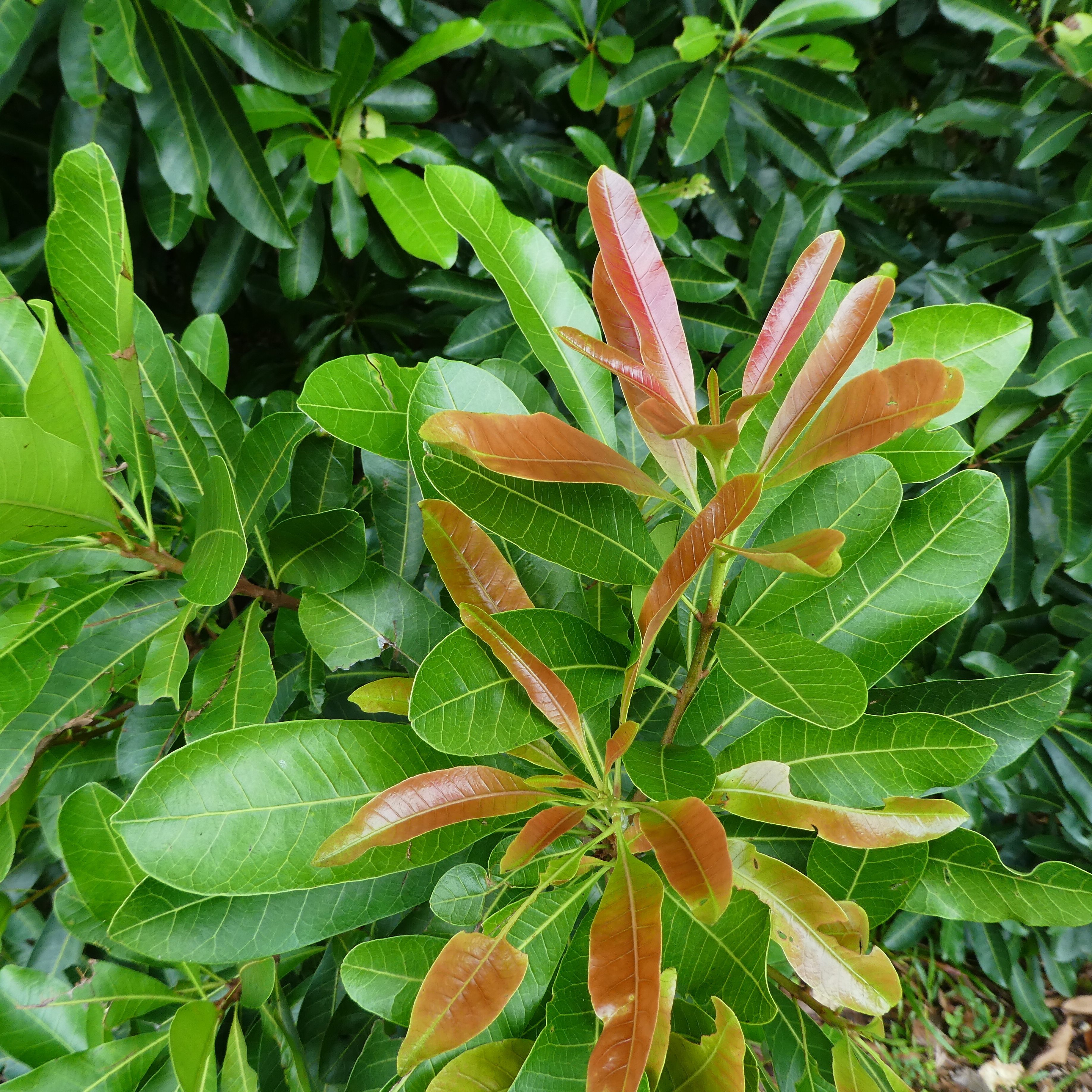 The Little Gooseberry Tree produces small fruits about 1 cm in diameter, similar in size to a Blueberry. When fully ripe they turn a dark red to deep purple. Best eaten fresh, the pulpy fruits have a sweet flavour often compared to Gooseberries. The tree belongs to the Anacardiaceae family and is related to Mango, Cashew, Ambarella and Marula. It may not be ideal for a productive orchard or a small backyard but it suits native gardens or larger orchards where a low-maintenance and unique snacking tree is welcome. Native to much of South East Asia, the western Pacific and northern Australia, the Little Gooseberry Tree is hardy and adaptable. It grows in a wide range of soils from clay to sand and tolerates drought, wind and salt. This makes it suitable for most tropical regions. It is often found in seasonal tropical climates such as savannahs and monsoonal areas where it copes well with long dry periods. However it does need good rainfall during the wet season to thrive. Its flowers attract insects and birds while the fruit is a valuable food source for native wildlife, making it a great option for gardeners who want to support biodiversity. Despite its name the Little Gooseberry Tree can grow quite tall, reaching up to 35 metres. It is suitable for parks, larger gardens and roadsides. The dense glossy foliage and bronze-red new growth are attractive features. Like the mango it produces large sprays of small creamy flowers from the tips of its branches creating a striking floral display when in bloom.