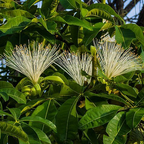 The Saba Nut stands out as a stunningly ornate, expansive evergreen tree, making it an ideal choice for providing ample shade while also yielding sizable seed pods filled with delectable nuts reminiscent of Peanuts in flavour. The fruits, often reaching the size of tennis balls, split open upon ripening to reveal multiple sizable seeds. These nuts, akin to Peanuts when raw and reminiscent of Chestnuts when cooked, offer a tasty nut whether enjoyed alone or incorporated into various dishes. Saba Nuts boast high levels of oil, protein, and fats, rendering them an exceptional choice for gardeners in tropical regions seeking a highly nutritious nut. It shares a close relationship with the Guiana Chestnut (often being confused for it) and likewise hails from the tropical regions of South America, typically thriving along waterways or on riverbanks that experience periodic flooding. This adaptability renders the plant tolerant to intermittent inundation and poorly drained soils, although it thrives best with a deep, loam soil, consistent rainfall or access to water without being submerged. Saba Nut are drought resistant, fast growing and tolerate both full sun or partial shade. With its elongated, dark green compound leaves, the Saba Nut presents a visually striking sight, especially when set against its large brown fruits. However, it truly captivates with its magnificent crimson blooms boasting slender, elongated petals that sharply contrast against the white stamen. Saba Nut can reach up to 18m tall but will commonly remain at a more manageable, lower height. In regions where alternatives to traditional temperate nuts are scarce, the Saba Nut emerges as a valuable, nutritious alternative, enhancing both the culinary and aesthetic landscape with its delicious offerings and ornamental beauty.
