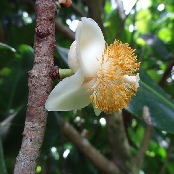 An ideal addition to any backyard, the Mammey Apple is an ornamental evergreen that produces unassuming but delicious tropical fruits. Fruits possess a distinctly unassuming appearance, with a round form and brown, slightly bumpy to leathery skin. Mammey Apples are often and understandably confused with the better known but unrelated Mamey Sapote, especially once picked. Beneath the unassuming skin the Mammey Apple hold a delightful, smooth and aromatic orange flesh with one to two large brown seeds. Reminiscent of Mango, Apricot, and Berries, lends itself well to a myriad of delectable uses. Perfect for crafting pies or be stewed with sugar to enhance their natural sweetness. Harvests can be preserved by making jams or jellies. For a refreshing beverage option, the fruits can be blended with water to create a refreshing juice or combined with ice, sugar, Cinnamon and Vanilla to make a flavourful smoothie. Its attractive ornamental qualities make it a standout specimen, boasting a pyramidal, dense canopy of glossy leaves and robust branches. Often likened to the Southern Magnolia for its aesthetic appeal, the Mammey Apple surpasses it considering the added bonus of producing delicious edible fruit. Flowers are particularly beautiful, with the white petals and pleasant fragrance adding to their appeal. Native to the tropics of the Caribbean and South America, the Mammey Apple thrives in tropical climates where they are prolific bearers, offering fruit year-round. They are relatively hardy and undemanding, requiring moderate to high rainfall and consistently warm temperatures. Plants are adaptable to various soil types, from rich, deep loams to shallow, sandy, and even limestone soils, Mammey Apple trees exhibit tolerance to drought, wind, and salt exposure to a moderate extent. Frost poses a threat, as even brief exposure can hinder fruit production and damage young plants, making them best suited for warm, frost-free climates. With their combination of tasty fruit and ornamental value, they are a valuable choice for spacious tropical garden.