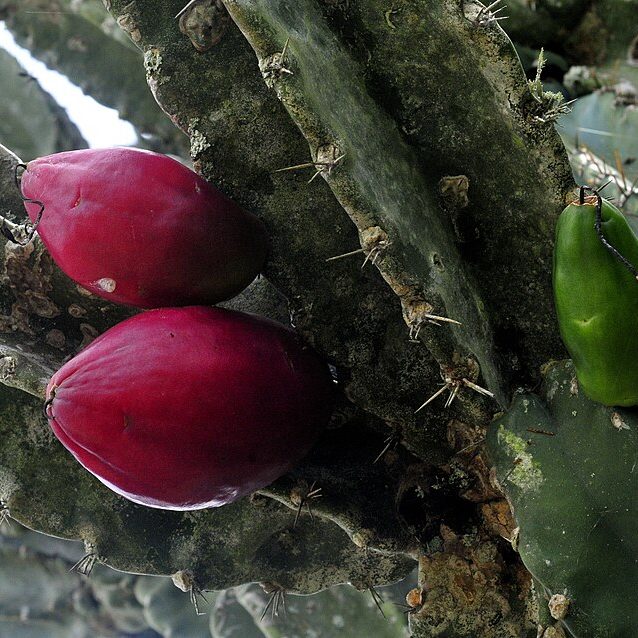 Mandacaru produces bright red, Pear-shaped cactus fruits that resemble those of its relative, the Apple Cactus (Cereus Repandus). Beneath the colourful, fleshy outer skin lies a succulent pulp that ranges in colour from white to deep violet-red. When fully ripe, the fruits often split open, exposing the flesh, making it easily accessible to birds and other wildlife in its native habitat, though this is less than optimal for gardeners wishing to savour the ripe fruits. Mandacaru fruit has a pleasant, mildly sweet flavour, often compared to a mix of Dragon Fruit, Banana, Strawberry, and Kiwifruit. Like many other cactus fruits, it contains numerous small, crunchy, edible black seeds. While most commonly eaten fresh as a refreshing snack, the fruit can also be preserved for later enjoyment. Mandacaru is native to Eastern and Central Brazil, particularly the tropical semi-arid savannah region of the Caatinga in the Northeast. This region is characterised by long, harsh dry seasons followed by short periods of intense rainfall. It is in these challenging conditions that the Mandacaru thrives, alongside other native edibles like the Imbu and Mangaba. The plant requires a position in full sun and well-draining soil, preferably with an acidic to slightly acidic pH. It thrives in tropical, frost-free climates. Outside of these conditions, Mandacaru has few requirements, especially regarding water. Naturally adapted to long dry spells, it is highly tolerant of semi-arid environments, making it an ideal low-maintenance option for such climates. Mandacaru is a distinctive, tree-like cactus that typically reaches heights of 7 to 9 metres at maturity. While its upright, columnar stems contribute to its striking form, the most notable feature is its large, white flowers, which bloom at night and may remain partially open during the early morning and late evening. The succulent stems are densely covered in sharp spines, making the plant unsuitable for placement near walkways or high-traffic areas. However, due to its dense, spiny growth and edible properties, it can be effectively used as a protective hedge, much like the Kei Apple or Natal Plum.