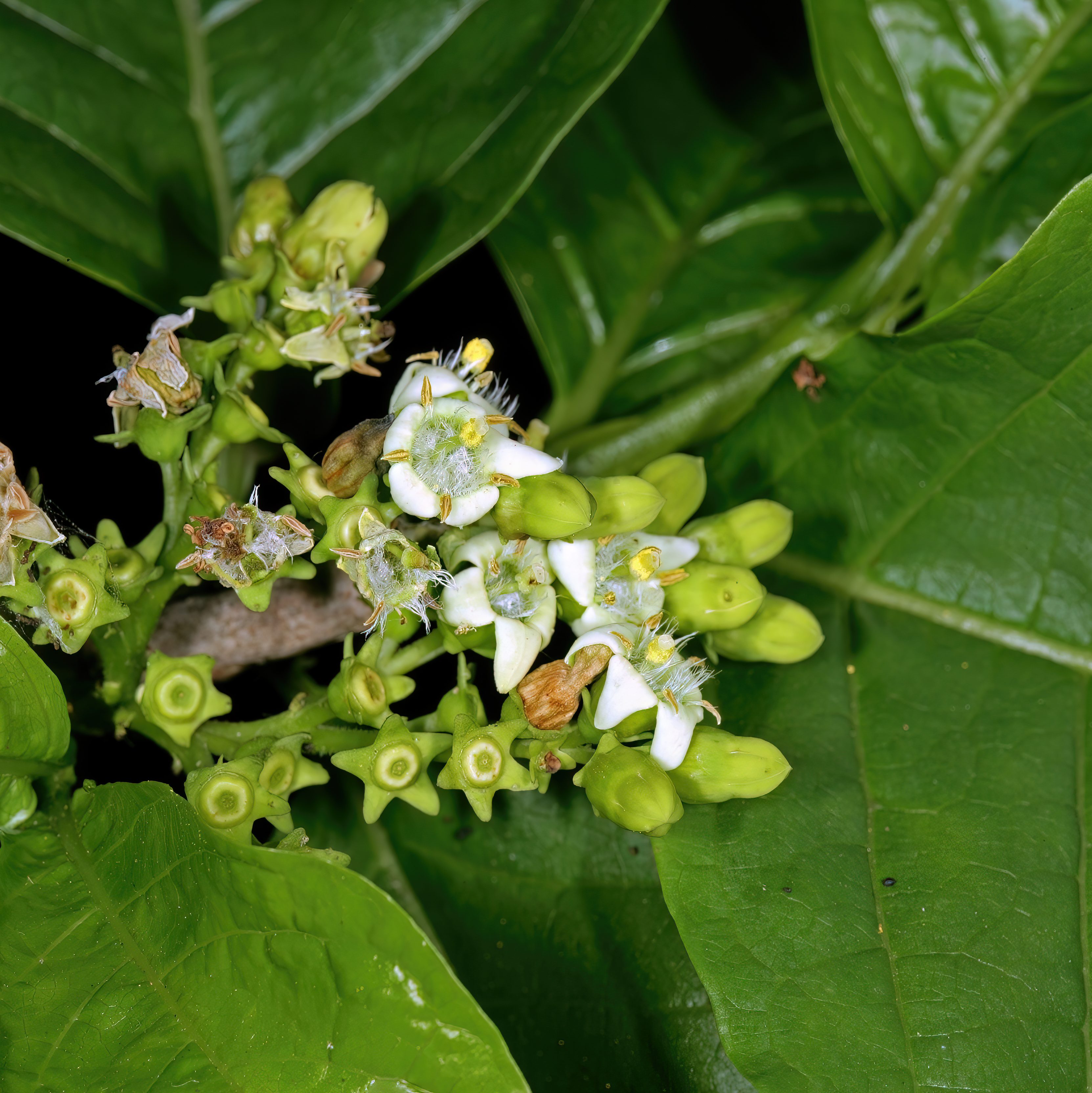 The Spanish Tamarind is a peculiar yet intriguing fruit, largely unknown outside of its native Africa and with limited cultivation elsewhere. The fruit is relatively small, about the size of a Lime when fully mature. Its flavour has been variously compared to Chocolate, Tamarind, Apple, and Marula, possibly reflecting variations among different seedlings or subpopulations. When ripe, the Spanish Tamarind has a smooth green skin and a sweet, mildly tangy apple-like flavour. However, like its relative, the Borojo, it turns soft and brown when overripe/dried and develops a more tamarind-like taste. The soft, creamy flesh is sweet and tangy, making it enjoyable fresh, though it is also commonly used in drinks. The Spanish Tamarind is native to much of the African continent, found across most regions south of the semi-arid Sahel. It naturally occurs in lowland riverine forests and savannah woodlands. The plants are highly adaptable to different soil types and are reasonably drought-tolerant, enduring seasonal dry periods within their native range. They thrive in well-drained, acidic to neutral soils with ample rainfall. However, Spanish Tamarind is frost-sensitive and requires full sun exposure to flourish, so it should be planted in areas with as much sunlight as possible. Belonging to the Rubiaceae family (the Coffee family), other edible species in this family include Nauclea, Borojo, and Blackberry Jam Fruit. The Spanish Tamarind grows as a shrub or small tree, with reported heights ranging from 2 to 15 metres, though it typically reaches around 5 metres in cultivation. The plant has shiny, pale green leaves arranged oppositely along the stems, and small white flowers that appear in clusters. While some describe the flowers as having an unpleasant odour, others find them to have a sweet, pleasant fragrance. Given the mixed reports on its scent, it may be best to avoid planting the tree along pathways or in areas frequently visited.